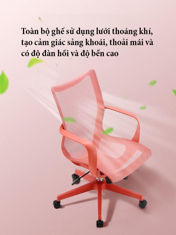 - Chất liệu: lưng lưới kết hợp nệm mút, chân ghế thép mạ crom, tay vịn làm từ nhựa