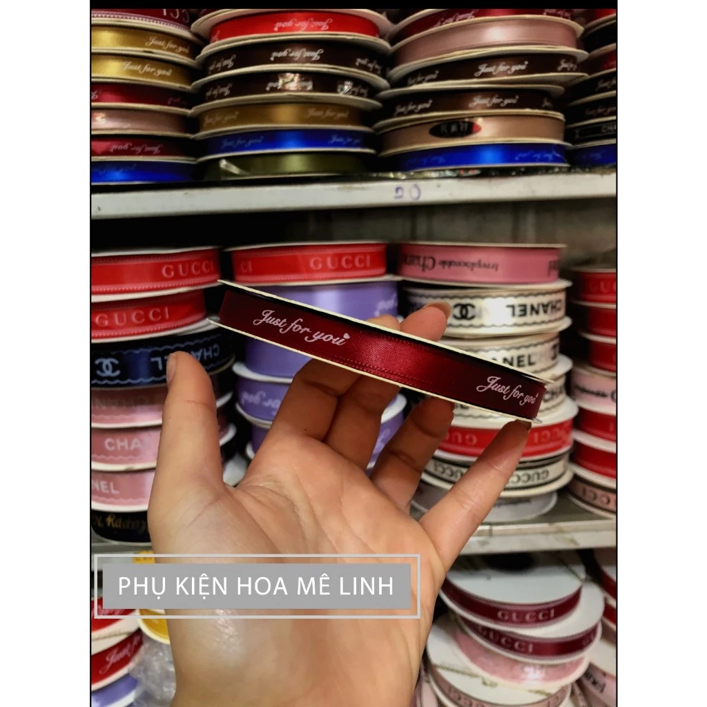 Mô tả sản phẩm Ruy Băng in chữ JUST FOR YOU (chỉ dành riêng Em / Anh) bảng 1cm.