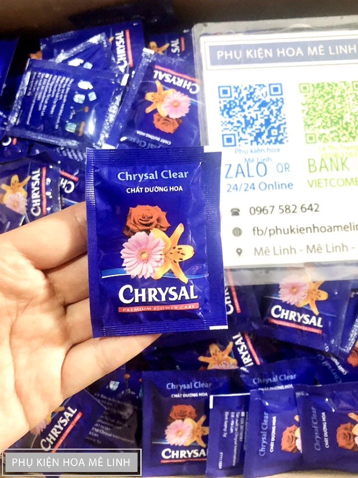 - Chất dưỡng hoa Chrysal Clear là sản phẩm chứa các hoạt chất đặc biệt có tác dụng giúp cho hoa cắt cành các loại được bảo quản lâu hơn, màu sắc tươi hơn so với thông thường