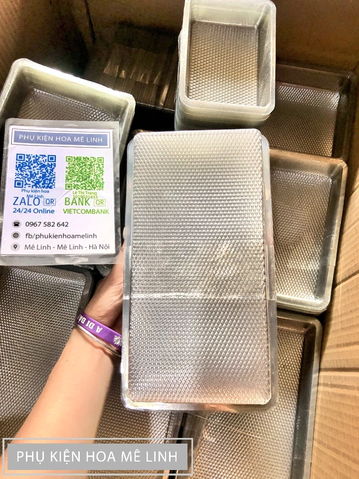 Kiim Long xin chào bạn. Khay nhựa chuyên dùng để đựng xốp cắm hoa.Thích hợp dùng 1 lần Chất liệu : nhựa trong mỏng Số lượng :combo 10 khay Kích thước khay Tất cả các khay đều có chiều cao là 3 cm Khay 1viên nguyên: 23cmx11,5cm Khay 1/2: 11,5cmx11,5cm Khay 2/3=12cmx17cm Lưu ý Để được hỗ trợ tốt ƞhất quý khách vui lòng quay video khui hàng mở hộp. Cảm ơn quý khách đã quan tâm đến sản phẩmĐặc tính sản phẩm Khay nhựa đựng xốp cắm hoa
