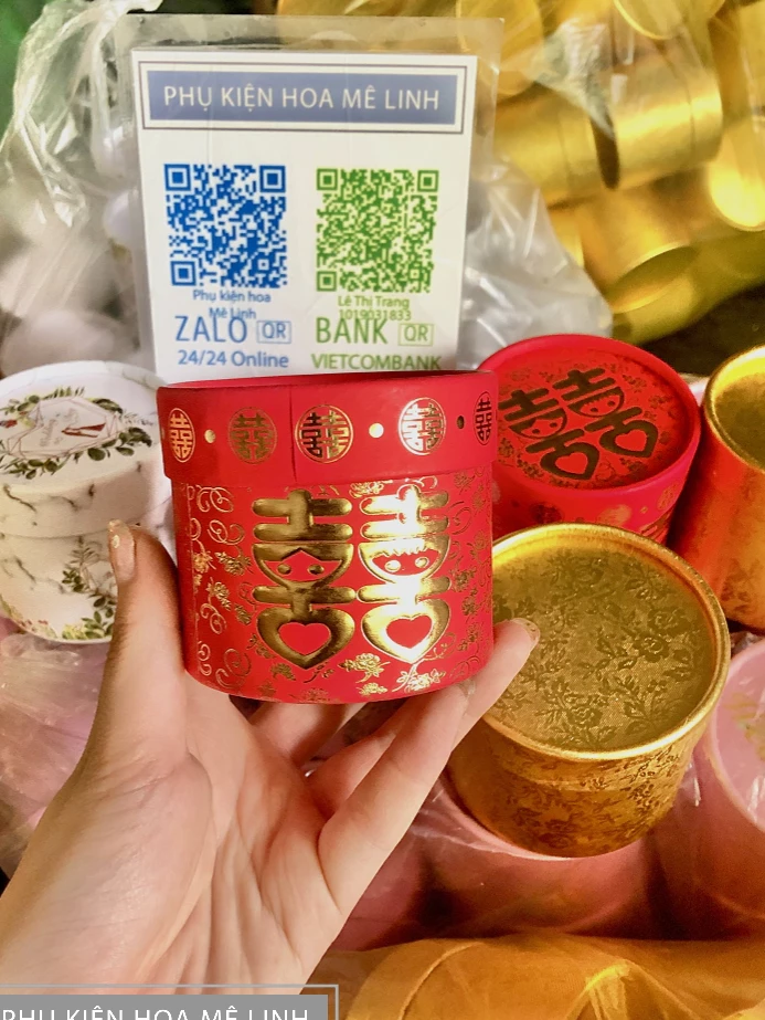 kích thước hộp đỏ và vàng như ảnh shop chụp. đường kính hộp 7cm. hộp vàng thấp hơn đỏ.